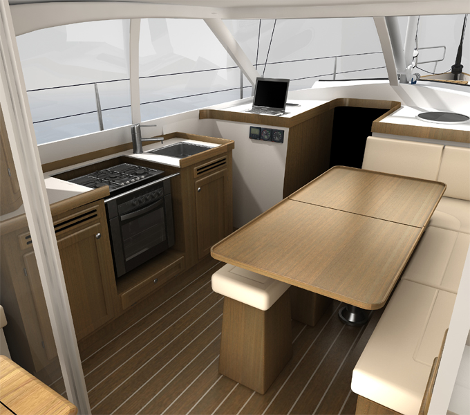 Il a ete developpe avec la structure principale stratifie a la coque et contre-moules structurels, avec deux niveaux de qualification et le pont panoramique (Deck Saloon) le concept. Nous avons donc une navigation confortable, facilite d'administration et une bonne vitesse de croisiere, le tout sans perdre la securite.
