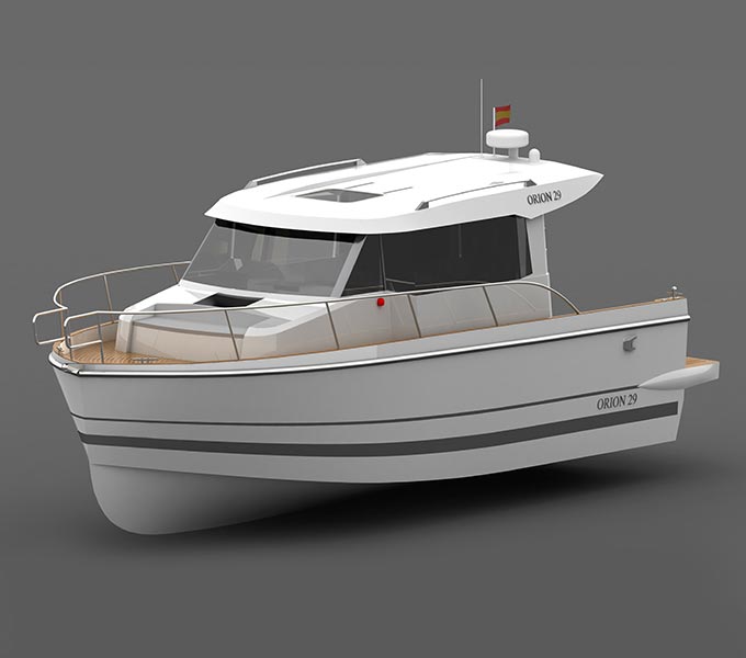 El ORION 29 es el “daily cruiser” creado sobre la propuesta de su configuración modular. El armador podrá tener la embarcación que se adapte a su forma de vivir el mar. Esta idea se sustenta en un casco eficiente, de navegar suave y seguro, ideal para relajadas jornadas de navegación.